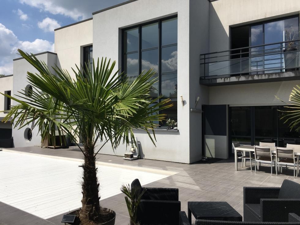 cette Véritable maison contemporaine d'architecte sur 800 m2 avec garage, parkings et piscine chauffée est organisée avec une
